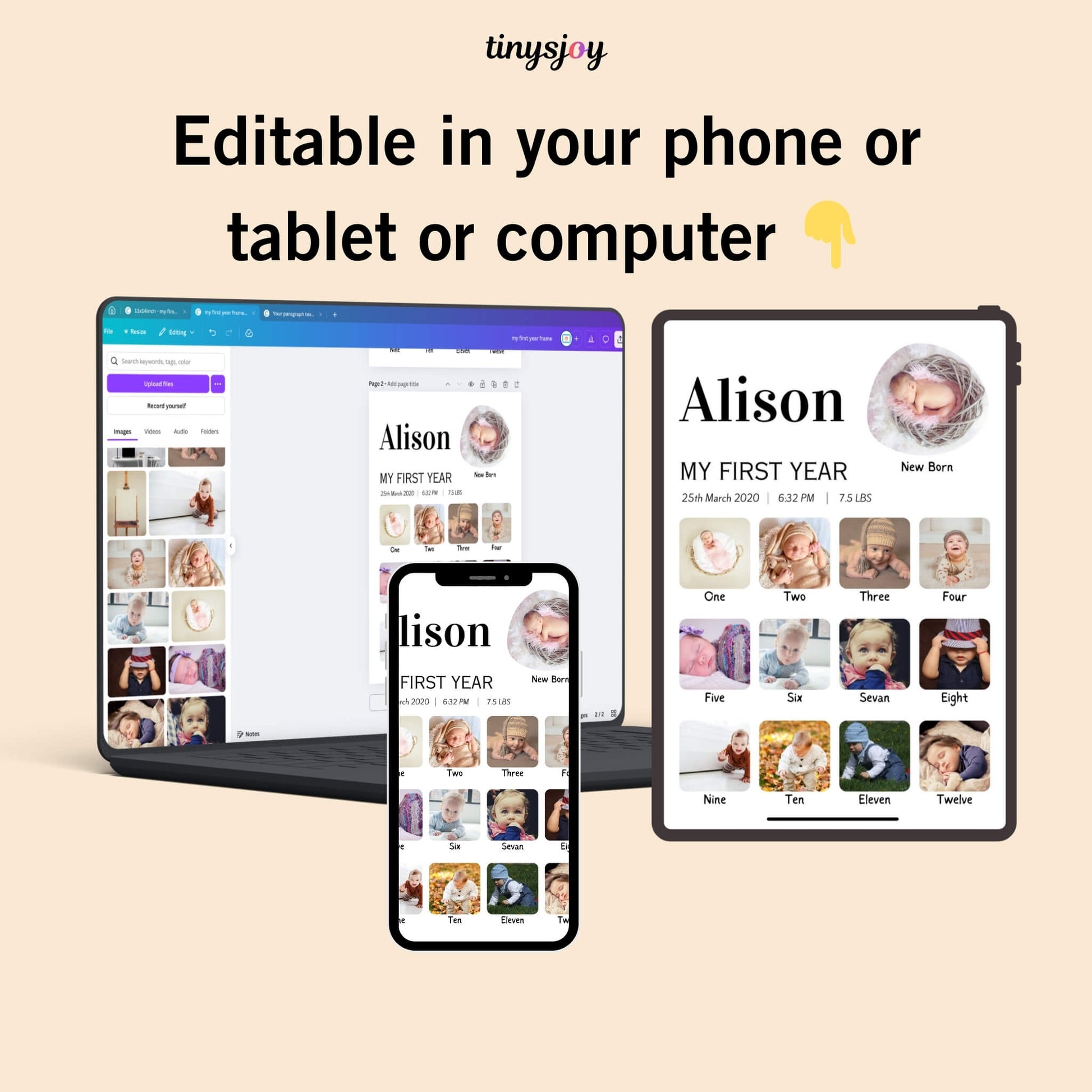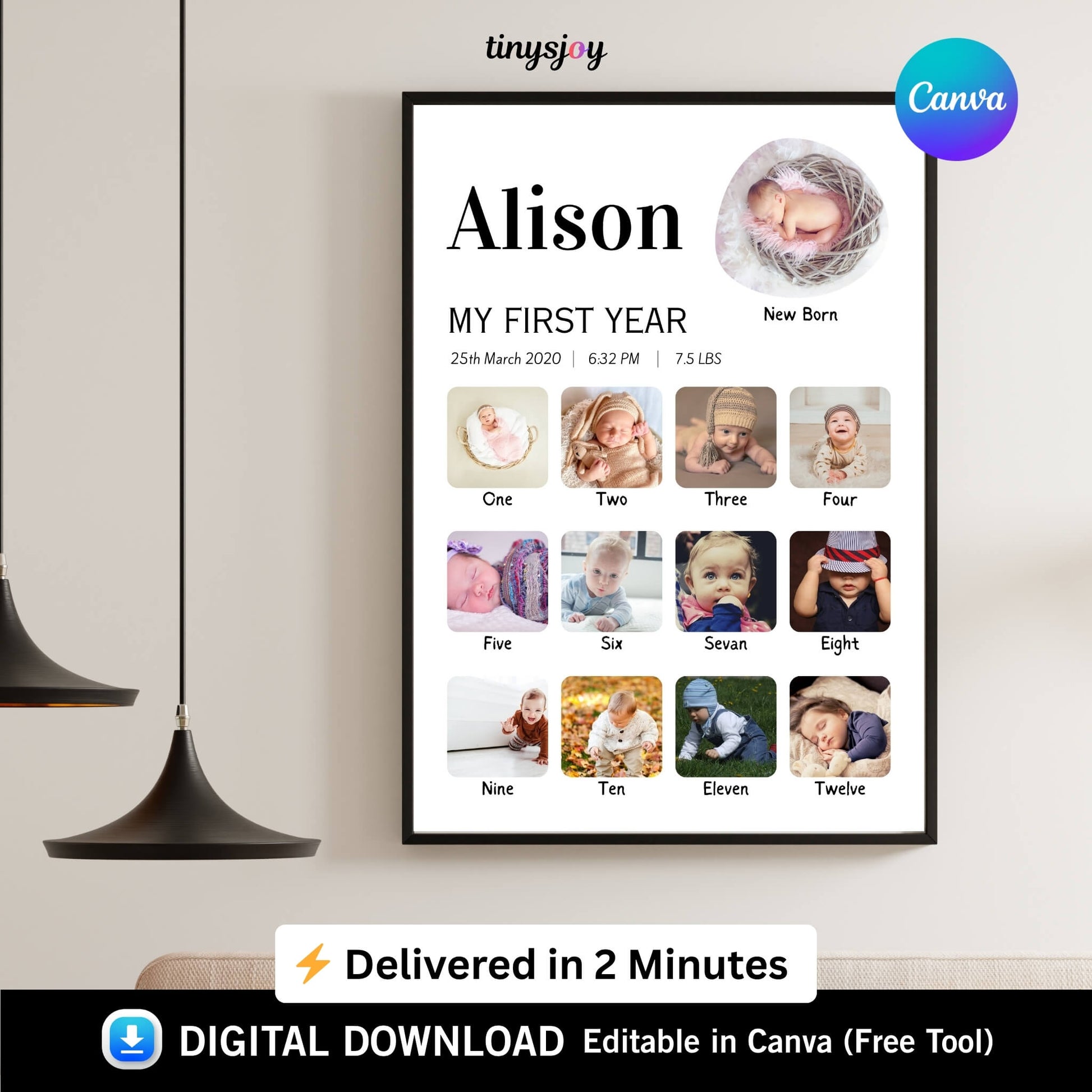Baby First Year Photo Frame – Editable in Canva Digital Download