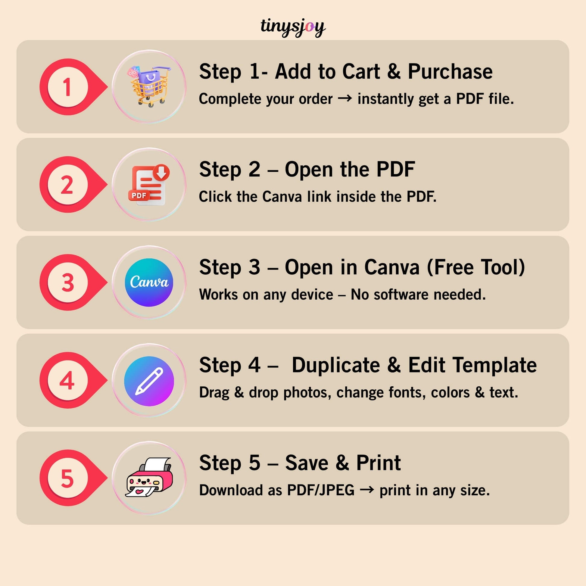 5 Canva templates included — print in any size listed below.